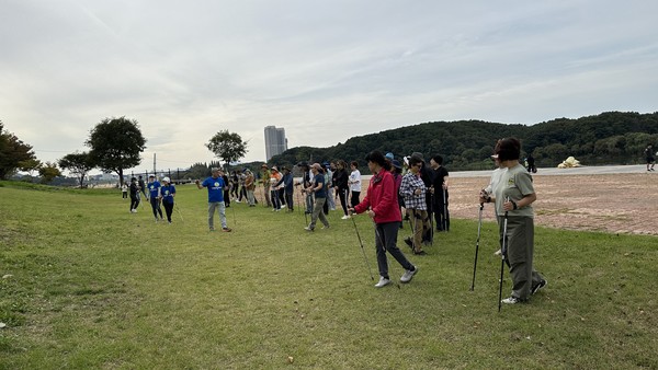 걷고, 저어가고, 달리는 형식의 오늘 프로그램은 (사)한국노르딕워킹협회에서 바르게 걷기의 중요성을 알려주었다