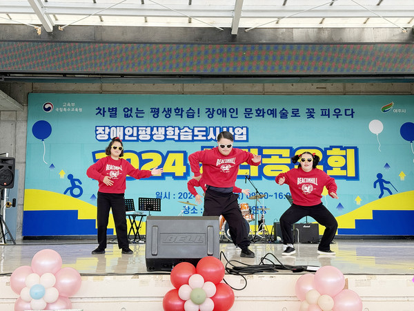 지역 중심의 장애인 평생교육 활성화를 위해 지난 2023년 장애인평생학습 도시로 선정된 여주시가 지난달 31일 오전 10시부터 오후 4시까지 여주시 천송동 신륵사관광지 야외무대에서 장애인평생학습 성과공유회 및 문화예술축제가 장애인과 장애인활동지원사, 자원봉사자 등 500여명이 참석한 가운데 성황리에 개최됐다.