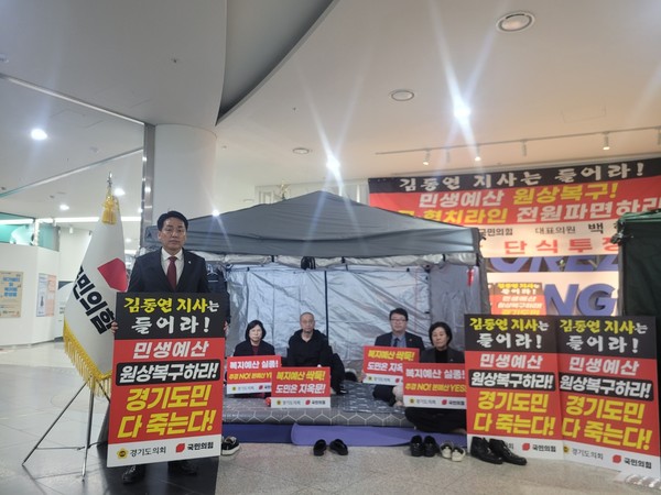 또한 이 의원은 “국민의힘은 복지예산 한 푼도 빼앗기지 않을 것”이라며 “도민의 식탁과 돌봄, 생존권에 직결되는 예산을 지키기 위해 끝까지 싸우겠다. 불량예산은 모두 바로잡고, 무너진 도정의 책임은 분명히 물을 것”이라고 단식 현장에서 단호하게 밝혔다.